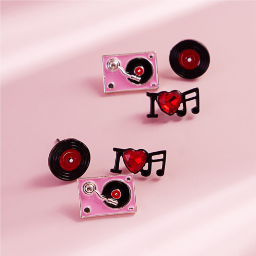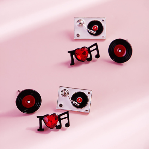 [US] FASHNZFAB 3pairs - enamel turn table music stud earring set