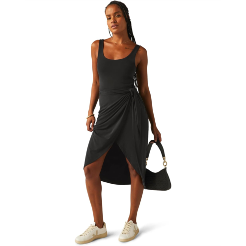Make every moment count styling Beyond Yoga Intrigue Midi Dress. Featuring a chic scoop front and back neck, this dress wraps elegantly from right to left, accentuating your curves. The fitted top and relaxed skirt offer a flattering silhouette, complemented by a trendy high-low hem at midi length. Sleeveless and easy to pull on, it's versatile for any occasion, from casual outings to formal meetings.