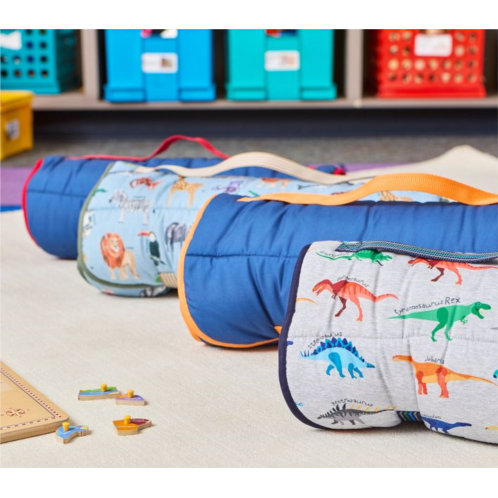 Expertly crafted of oh-so-soft materials, our Mackenzie Nap Mat is comfy and complete with a built-in pillow. The travel-ready design rolls up and secures for easy carrying, and its playful print adds dreamy color to naptime.