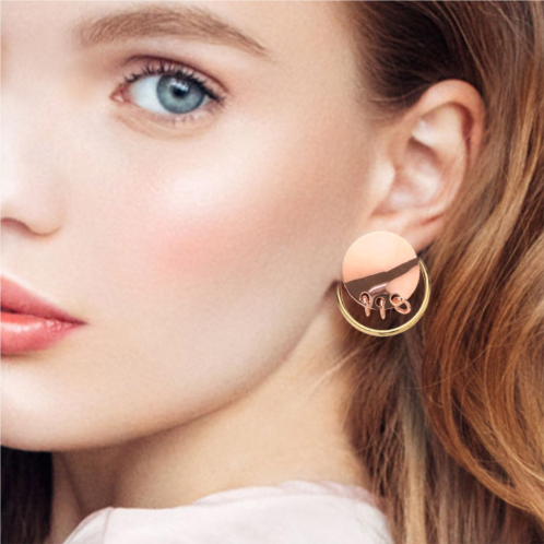 [US] FASHNZFAB triple ring linked metal disc metal hoop earrings