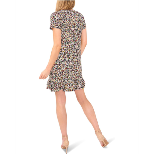 The CeCe Ruffled Hem V-neck Knit Dress combines comfort and style with a flattering V-neckline and short sleeves. The vibrant floral print adds a touch of femininity, while the black trim creates a sleek outline. This printed dress is styled with a ruffled hem. Make your style statement wearing this knit dress.