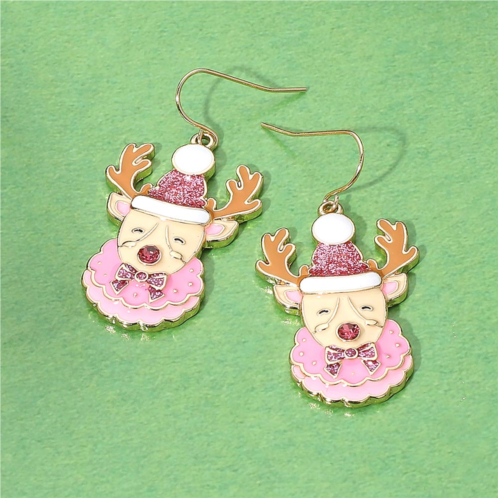 [US] FASHNZFAB glittered enamel christmas reindeer dangle earrings
