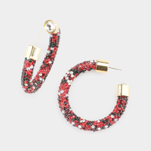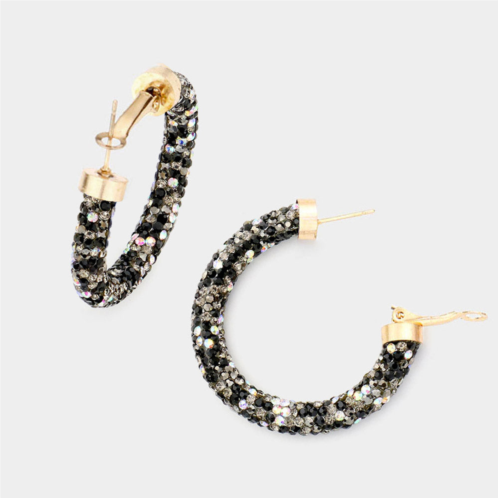 [US] FASHNZFAB clear stone detail rhinestone pave half hoop earrings