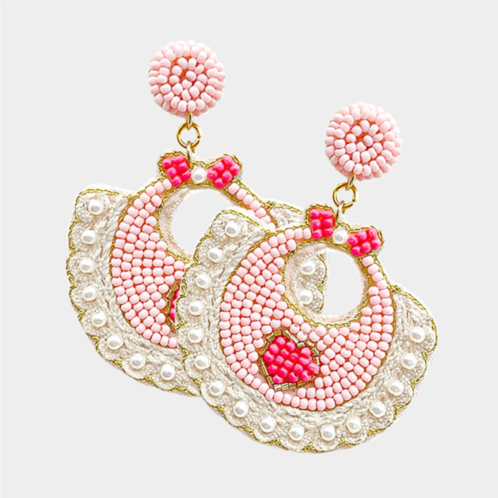 [US] FASHNZFAB felt back pearl beaded baby bib dangle earrings