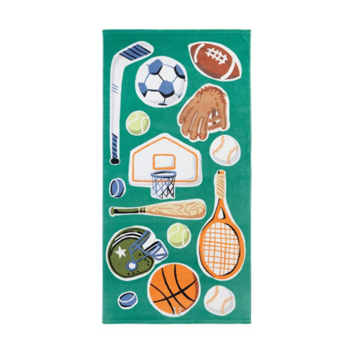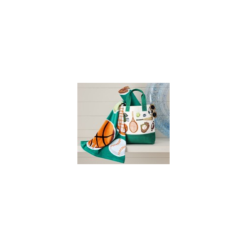A winning choice for swim day, this set pairs a durable tote and reversible towel featuring iconic gear for their favorite sports. Backed in coordinating cabana stripes, the cotton terry velour towel offers cozy softness, superior absorbency and handy UPF 50+ protection. Stash it in the matching water-resistant canvas tote, and you’re ready for park, pool or picnic.