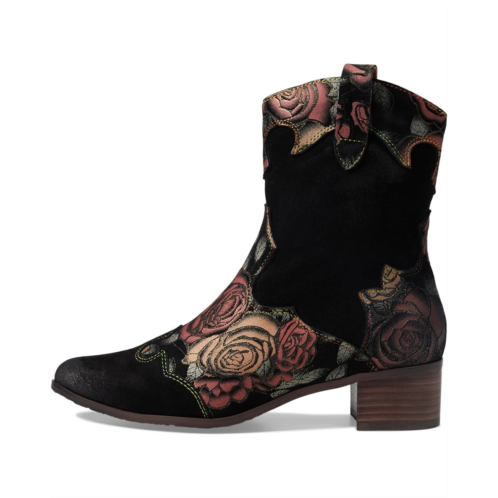 - Experience your cozy and ravish trendy look wearing the L'Artiste by Spring Step Ladyluck-Shine. This western boot has an allover patch detailing with an iconic print, block heels, and a pointed toe. Wear it to give a modish glance to your look.