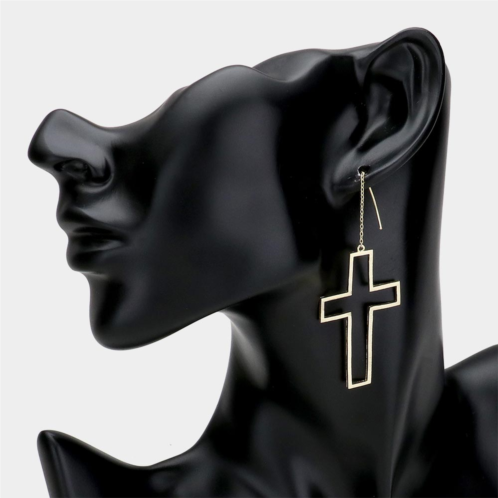 [US] FASHNZFAB brass open metal cross threader earrings