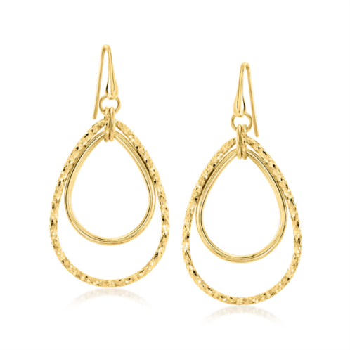 A top-rated jeweler since 1952, Ross-Simons travels the world to find high-quality styles at the best prices. This Italian-made pair is sure to get you noticed. Crafted in gleaming 18kt yellow gold over sterling silver, a polished oval is nested inside a larger textured oval for a dramatic look. Length is 2 3/8'. Earwire, double-oval drop earrings. Each Ross-Simons item arrives in a fine jewelry presentation box. Shop Ross-Simons jewelry risk-free as all items include a 30-day, 100% money-back guarantee.