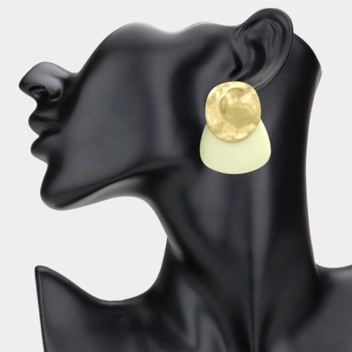 [US] FASHNZFAB hammered metal wooden plate layered earrings