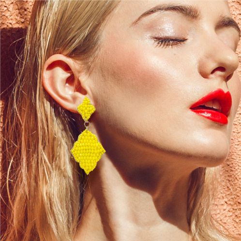 [US] FASHNZFAB felt back seed beaded double petal link dangle earrings