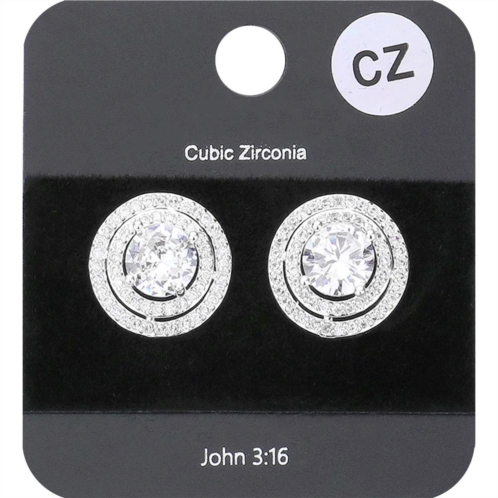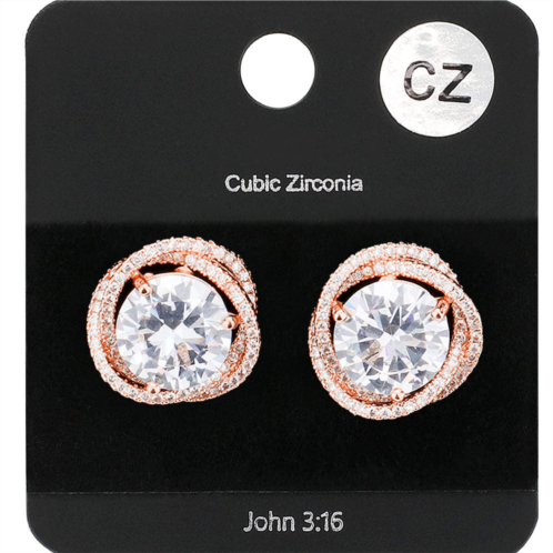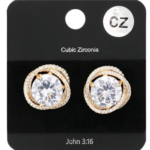Size - 0.6' X 0.6'Post BackElegant stud earrings with a round cubic zirconia center stone surrounded by a twisted halo of pave accents. A refined yet eye-catching design, ideal for weddings, parties, or adding sparkle to any outfit.
