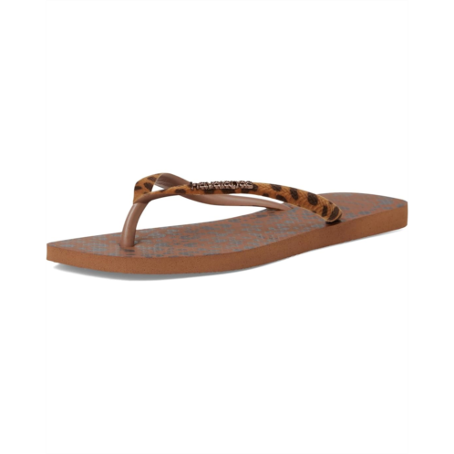 The Havaianas Slim Square Velvet Sandals are for those who exude style! With the Slim design, these sandals feature thinner straps and a sole with a square toe. The sole also boasts an animal print, straps with printed velvet applications, and a metal Havaianas logo. Get yours now.
