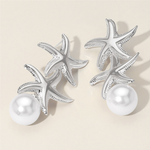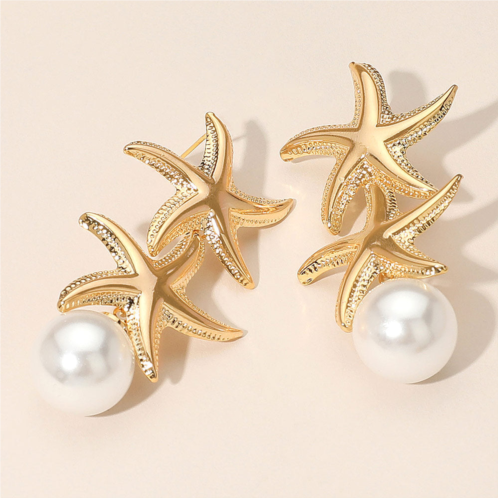[US] FASHNZFAB pearl tip double metal starfish drop earrings