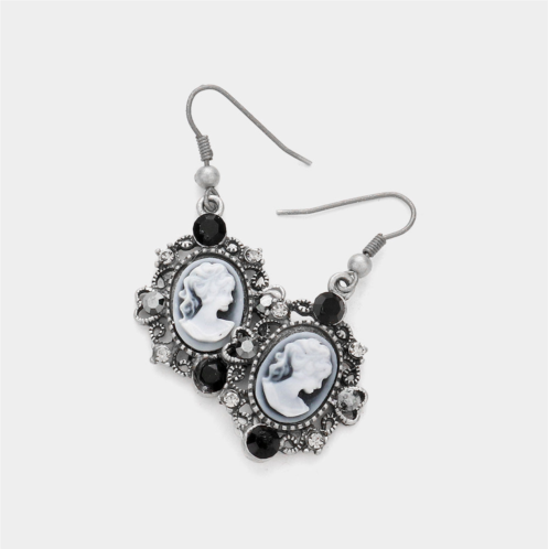[US] FASHNZFAB cameo accented stone embellished dangle earrings