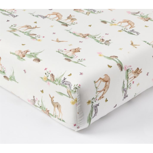 Gentle fawns and other woodland animals are showcased on this crib sheet, delivering a touch of nature right to their nursery. The beautiful imagery is printed on pure organic cotton for natural softness, breathability and comfort. Created in partnership with founder and creative director of lifestyle brand AERIN, this exclusive collection brings updated heritage and whimsical elegance to the nursery or sleep space.