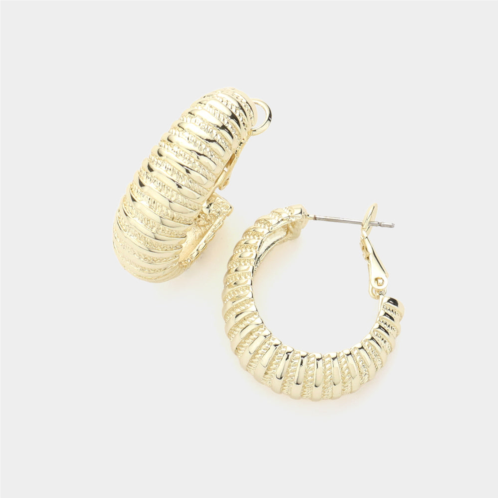 [US] FASHNZFAB 14k gold plated textured metal hoop earrings