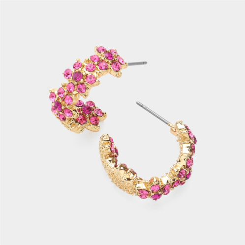 [US] FASHNZFAB flower rhinestone embellished half hoop earrings