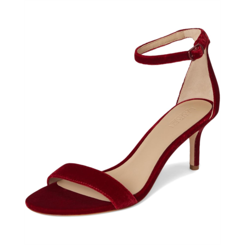 Crafted with luxuriously soft velvet, the Lauren Ralph Lauren Allie Mid-Heel Velvet Sandal is designed with a slender silhouette equipped with a kitten heel for a leg-elongating effect. A padded footbed ensures the utmost comfort with each step, while an 'LRL' metal logo at the back adds a signature finishing touch.