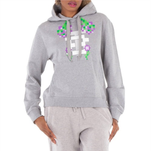 Burberry Ladies Tops. Fashion category - Hoodies & Sweatshirts. SKU - 8064877. Color - Pale Grey Melange. Burberry x Minecraft Poulter Monogram Motif Print Cotton Hoodie. This organic loop-back cotton hoodie blends comfort with contemporary design. Featuring a drawcord hood, pouch pocket, and ribbed trims, it offers a relaxed yet refined regular fit. Long sleeves enhance its classic silhouette, while a striking pixelated Thomas Burberry Monogram, Creeper, and floral graphics add a modern, artistic touch. 100% Cotton.