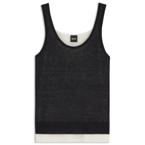 Blended with soft wool and alpaca, this BOSS Womenswear vest top is a versatile casual option. Two-tone layered design. Knitted structure.