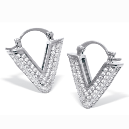 [US] PalmBeach Jewelry round pave-style crystal silvertone v-hoop earrings
