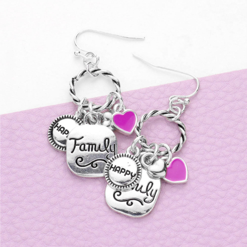 [US] FASHNZFAB braided open circle happy family enamel heart dangle earrings
