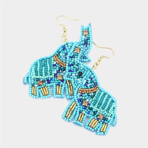[US] FASHNZFAB felt back elephant beaded dangle earrings