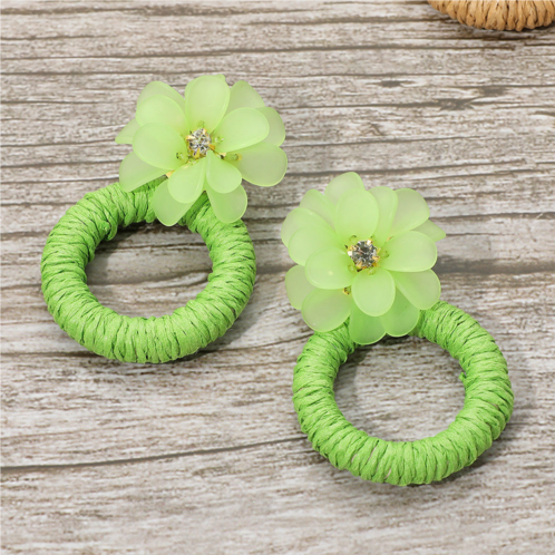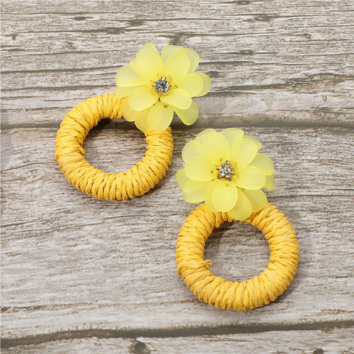 [US] FASHNZFAB flower raffia hoop dangle earrings
