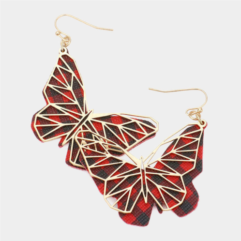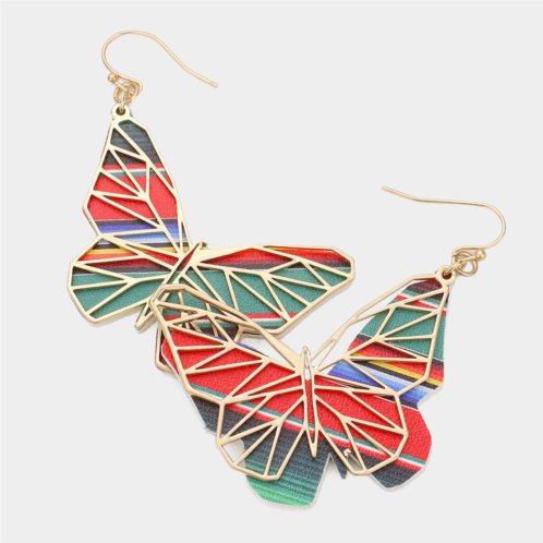 [US] FASHNZFAB faux leather back metal laser cut butterfly dangle earrings