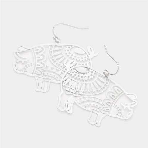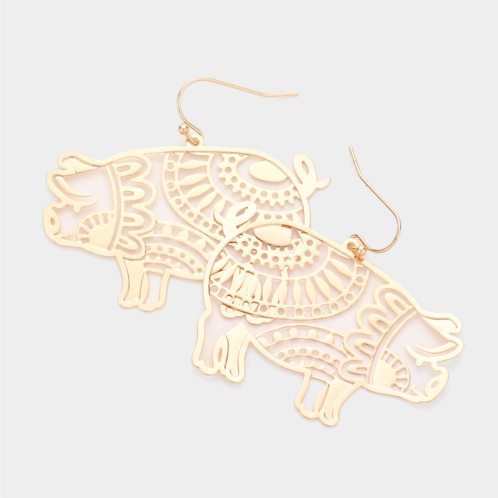 [US] FASHNZFAB brass metal cutout pig dangle earrings