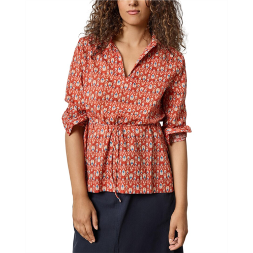Introducing the 'Lilla P Collared Split Neck Top' from the renowned brand Lilla P. This chic top falls into the category of women's clothing, specifically shirts, tops, and blouses. The Collared Split Neck Top features a trendy chili print with side slits, tunic length, and an optional skinny self-belt for added style. Made from 100% cotton, this top is not only fashionable but also comfortable. With a length of approximately 26 1/2-26 inches from shoulder to hem, this top is perfect for any casual occasion. Conveniently machine washable and imported, this top embodies the brand's philosophy of understated luxury for a casual lifestyle.