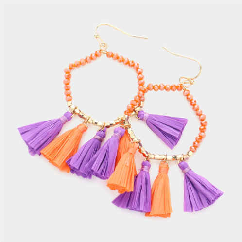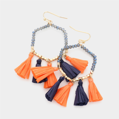 [US] FASHNZFAB game day beaded open hexagon raffia tassel link dangle earrings