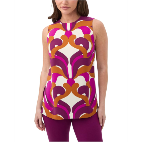 Get ready to turn heads with the Trina Turk Haruto Top! This sleeveless stunner features a round neckline that accentuates your collarbones and adds a touch of femininity. The button-loop closure with a keyhole at the back neck adds a playful detail, while the straight hem with side slits allows for easy movement and a flattering fit.