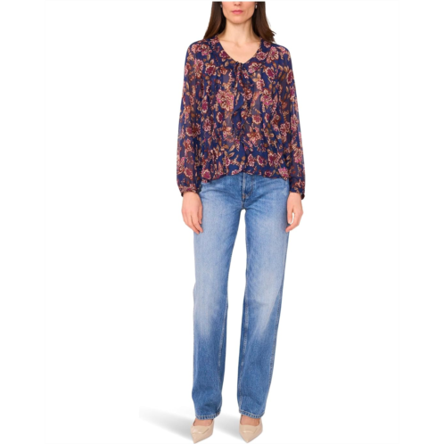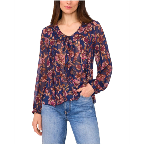 Featuring an allover floral print, the Vince Camuto Long Sleeve V-Neck with Centerfront Ruffle top is a perfect choice for casual outings and dates. This printed top is styled with long sleeves, a ruffled V-neckline with self-ties, and a straight hem. Its ruffle detail at the center front adds to its style.