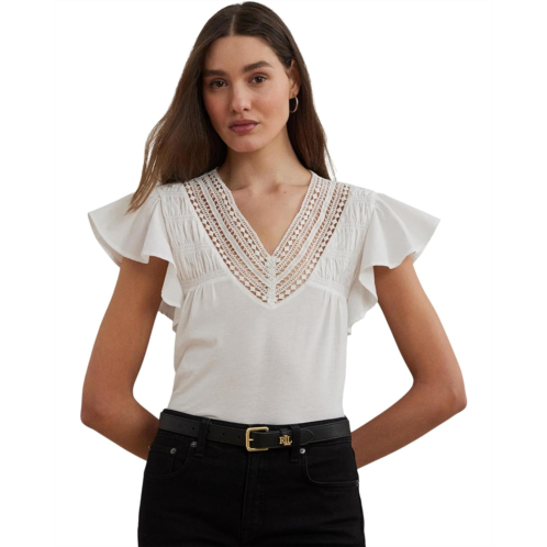 [US] POLO RALPH LAUREN Lace-trim Jersey Flutter-sleeve Tee