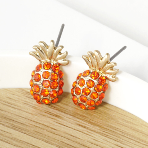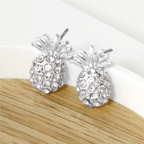 [US] FASHNZFAB crystal pave pineapple stud earrings