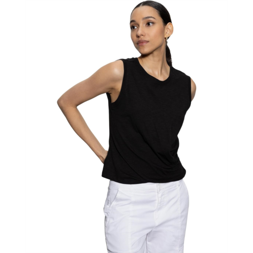 Dress fashionably wearing the stylish Sanctuary Draped Tank. This no-lining top features crew neckline, sleeveless style, classic fit, solid pattern, pull-on style, and straight hem.