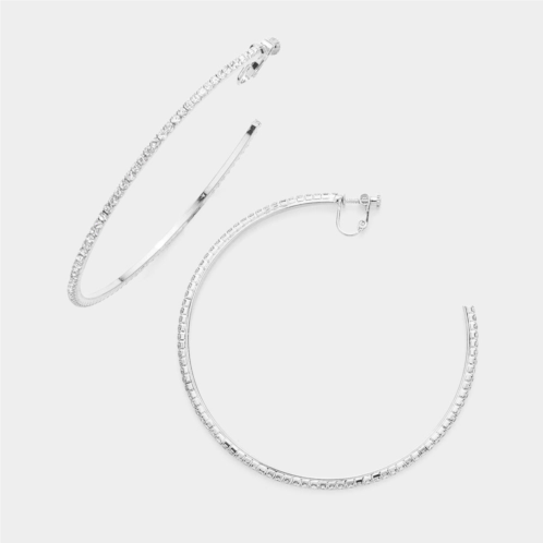 [US] FASHNZFAB crystal rhinestone 3.3 inch hoop clip on earrings