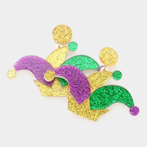 [US] FASHNZFAB mardi gras glittered resin hat dangle earrings