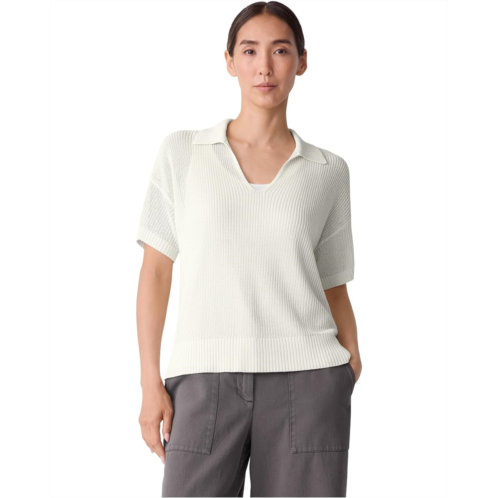 [US] Eileen Fisher Cotton Silk Cord Short Sleeve Johnny Collar Sweater