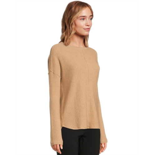 [US] Elliott Lauren Cotton Cashmere - Round Neck Waffle Stitch Drop Shoulder Long Sleeve Sweater