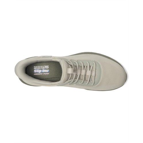 - Step into style and comfort in the BOBS from SKECHERS Hands Free Slip-Ins Bobs Arc Waves shoes. These low-top sneakers feature an engineered knit mesh upper with bungee stretch laces and Glide Step and Hands Free Slip-Ins technology for an easy fit. Made with 100% vegan materials, they are designed with a Skechers Memory Foam footbed and rubber insole for cushioned comfort. Machine washable and durable, these lace-up shoes are a great choice for everyday wear.