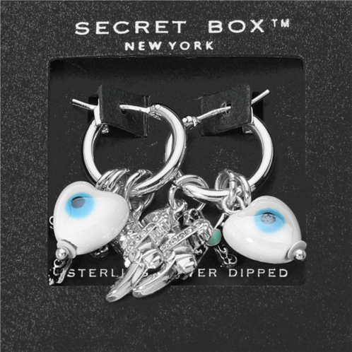[US] FASHNZFAB secret box_sterling dipped ceramic evil eye heart cross western boot charm dangle pin catch hoop earrings
