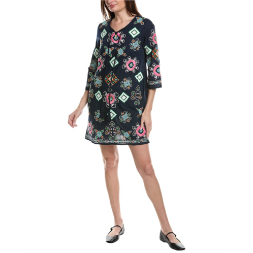 Introducing the Frances Valentine Capri Tunic, a must-have addition to your wardrobe this season. This stylish tunic features navy multicolor stripes, embroidered detailing, side seam pockets, and slits at the hem for a chic and modern look. Made from 100% cotton with 100% polyester embroidery, this tunic is both comfortable and easy to care for. The slip-on styling makes it a breeze to wear, while the approximately 36-inch length from shoulder to hem ensures a flattering fit. Whether you dress it up with heels or keep it casual with sandals, the Frances Valentine Capri Tunic is sure to become a staple in your wardrobe. Available in a range of sizes, this tunic is perfect for all body types. Don't miss out on this versatile and stylish piece - order yours today!