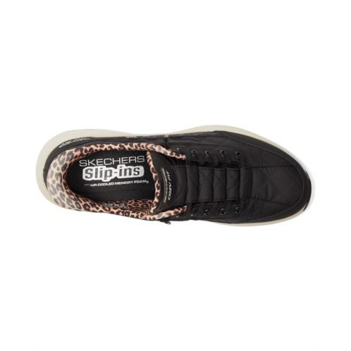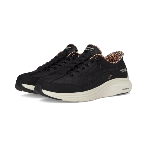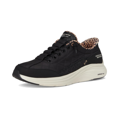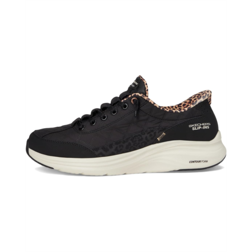 - Meet the SKECHERS Contour Foam Cozy Fit Hands Free Slip-Ins Leopard Dream! These hands-free slip-ins redefine effortless wear; just step in and go, no tying required. Featuring a breathable mesh upper with chic leopard accents, this pair adds a playful pop to your everyday look. The contour foam and Air-Cooled Memory Foam insole cradle your feet in plush, cooling comfort, while the cozy fit design ensures a snug, supportive feel with every stride. A knotted bungee lace-up detail gives a sporty twist without the fuss, and the durable rubber outsole provides reliable traction.