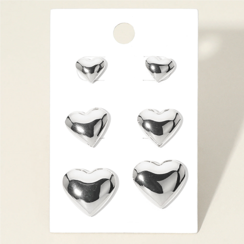 [US] FASHNZFAB 3pairs - metal heart stud earring set