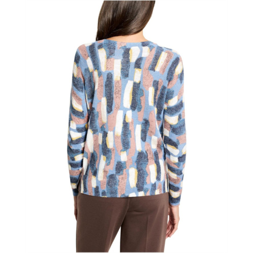 A lightweight layer that's anything but basic. Crafted from breathable cotton slub yarn and knit in a textured tuck stitch, it brings soft dimension and airy comfort to your everyday wardrobe. The woven brushstroke print is artfully blown out for a bold, painterly effect, making each piece feel like a wearable canvas. Finished with a flattering V-neck and easy pullover style, this lightweight knit is perfect on its own or layered up as the seasons shift. Mindfully Made from 'no waste' fully fashioned knitwear to eliminate textile waste.