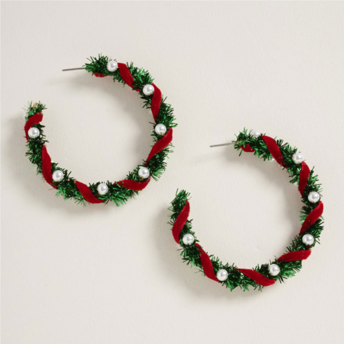 [US] FASHNZFAB 2 x 2 pearl accent holiday tinsel hoop earrings