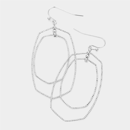 [US] FASHNZFAB brass metal double open hexagon dangle earrings