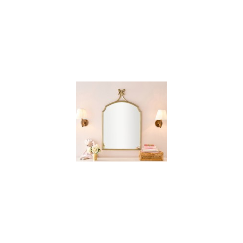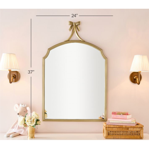 This ribbon embossed mirror puts a bow on enchanting style. With an arched silhouette in antique brass, this wall decor looks perfectly precious when hung in an entryway, over a dresser or above a nursery changing table.